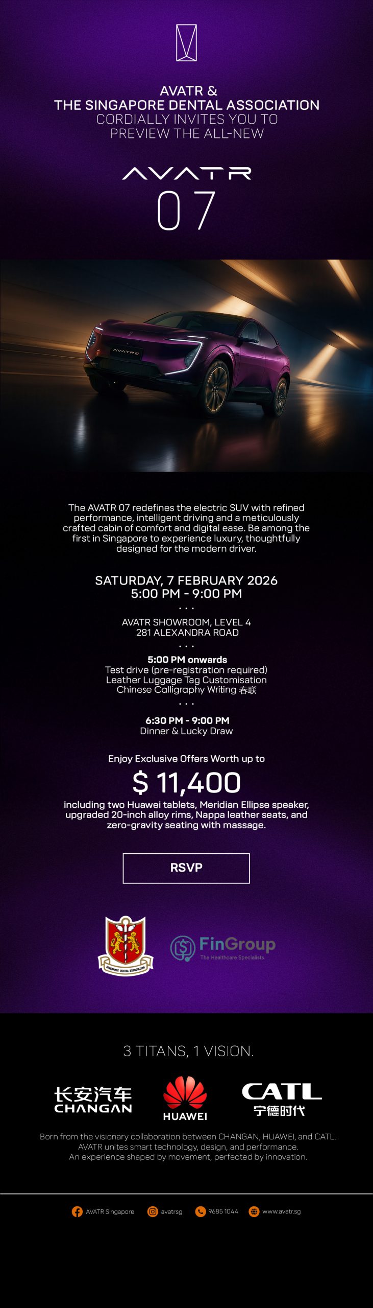 Enjoy a private preview of the upcoming AVATR 07 and an exclusive test-drive experience of the flagship AVATR 11 - a luxurious SUV defined by the zero-gravity Nappa leather massage seats, high-end Meridian audio and a refined 600km electric range. Enjoy exclusive discount for SDA membersRegistration Details: